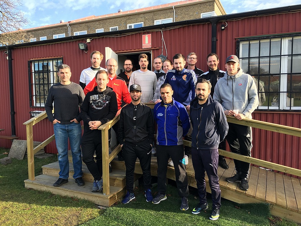 Ledare från BK Flagg, FIFH Fotboll och Backarnas FF med instruktören Stefan Mårtensson.