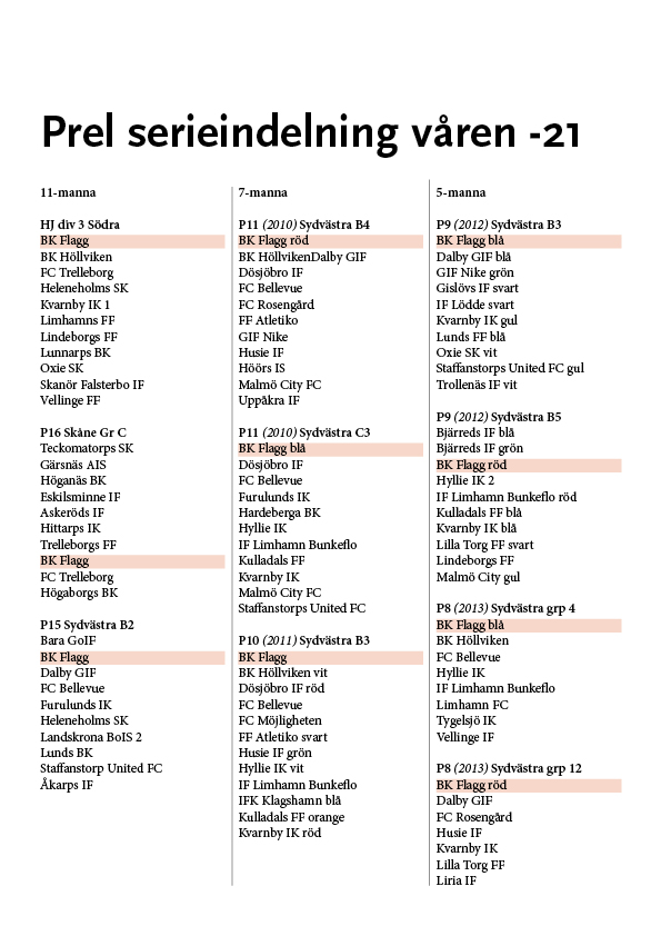 Här kommer alla BK Flaggs lags serier förutom seniorerna.